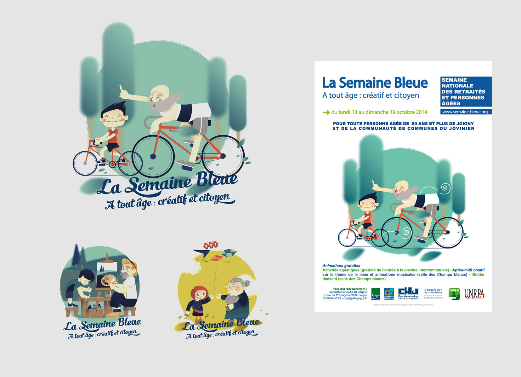 Illustrations et affiche pour la semaine bleue à Joigny