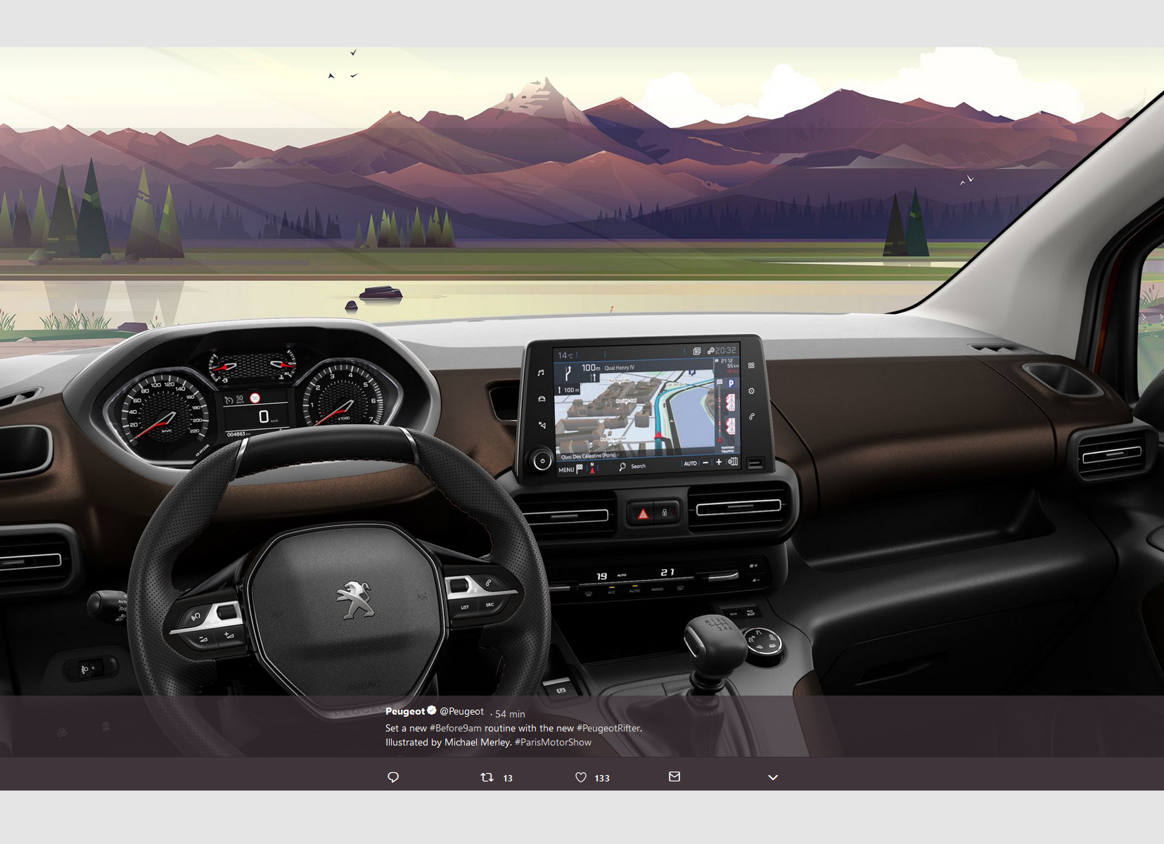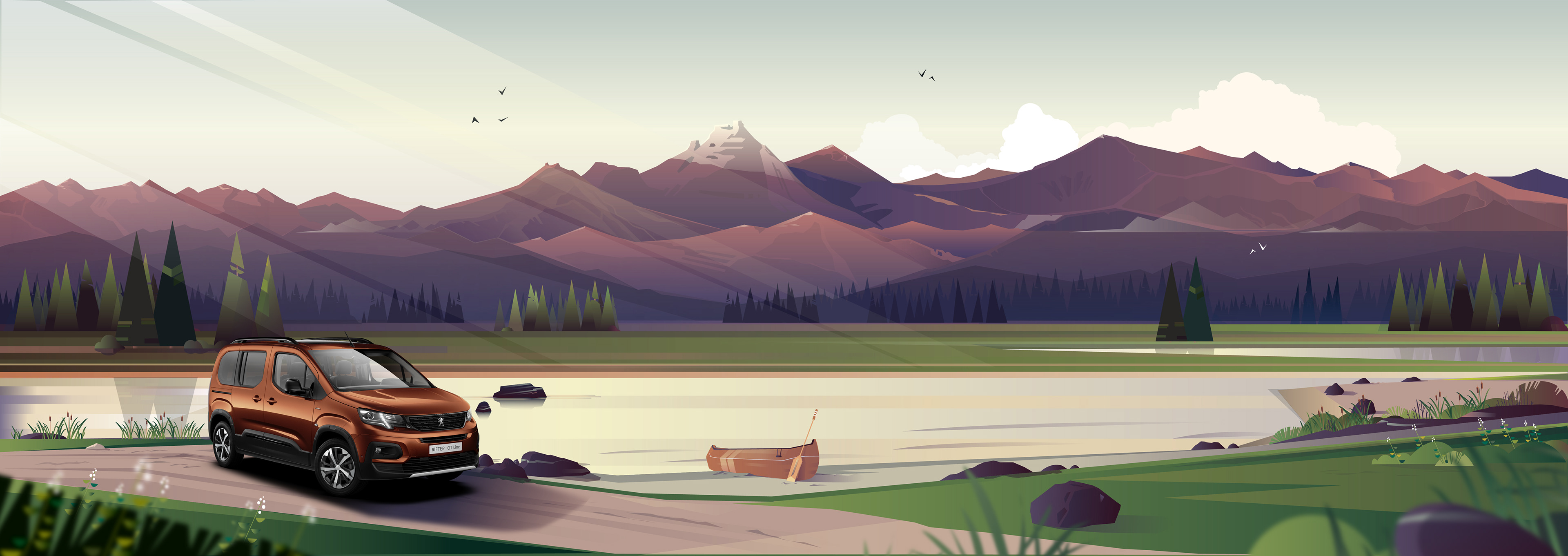 Création d'un paysage de montagne (100% vectoriel) pour l'intégration du nouveau Rifter de Peugeot