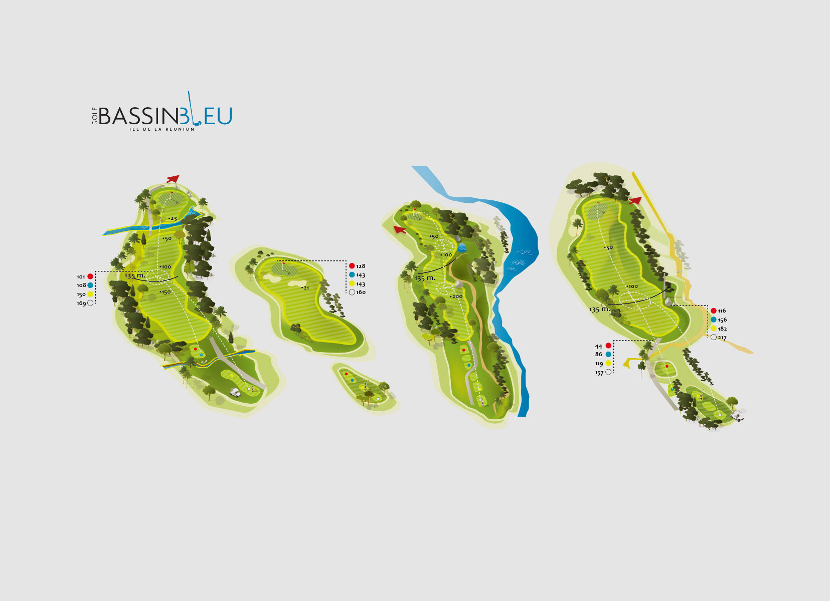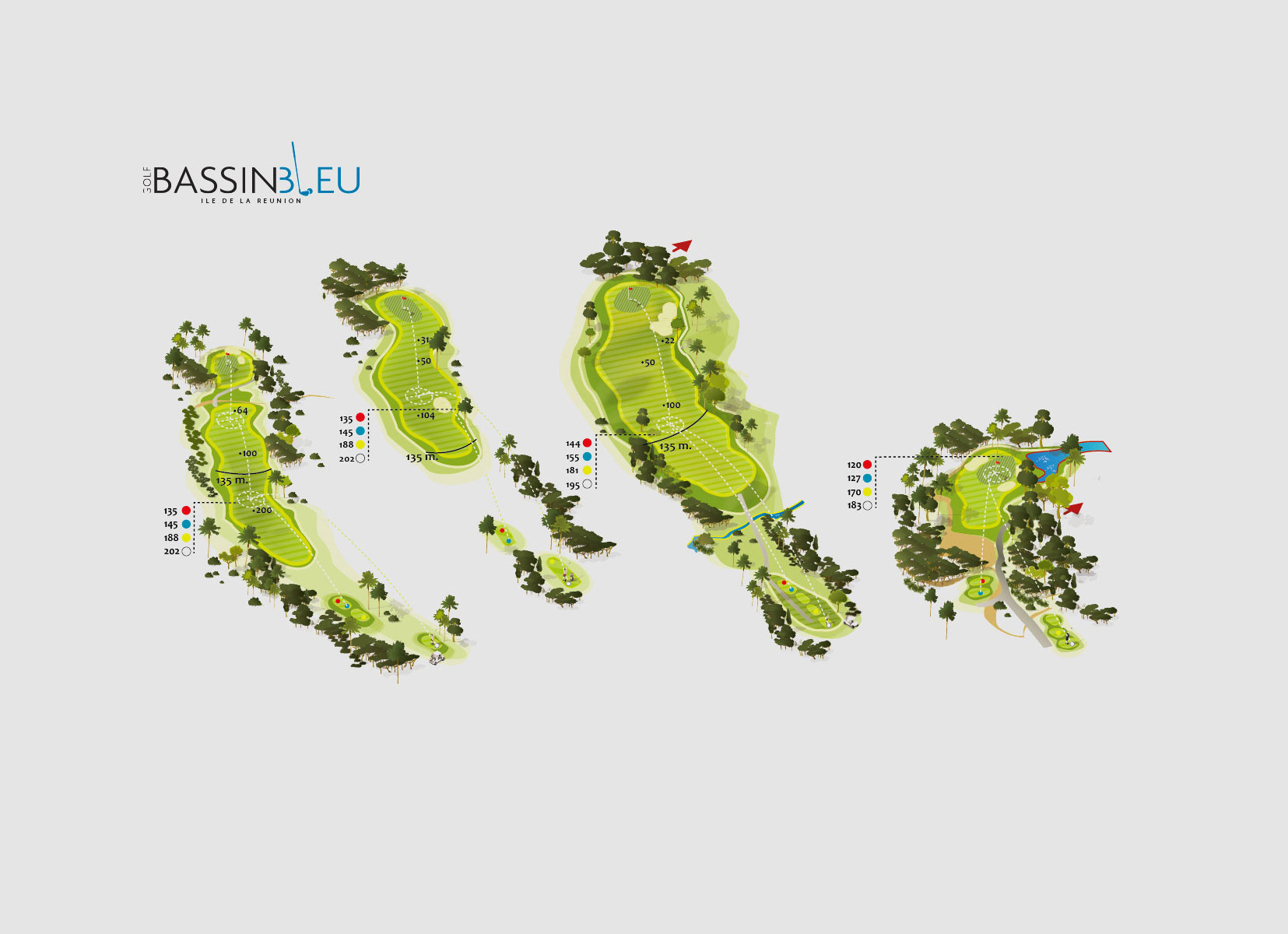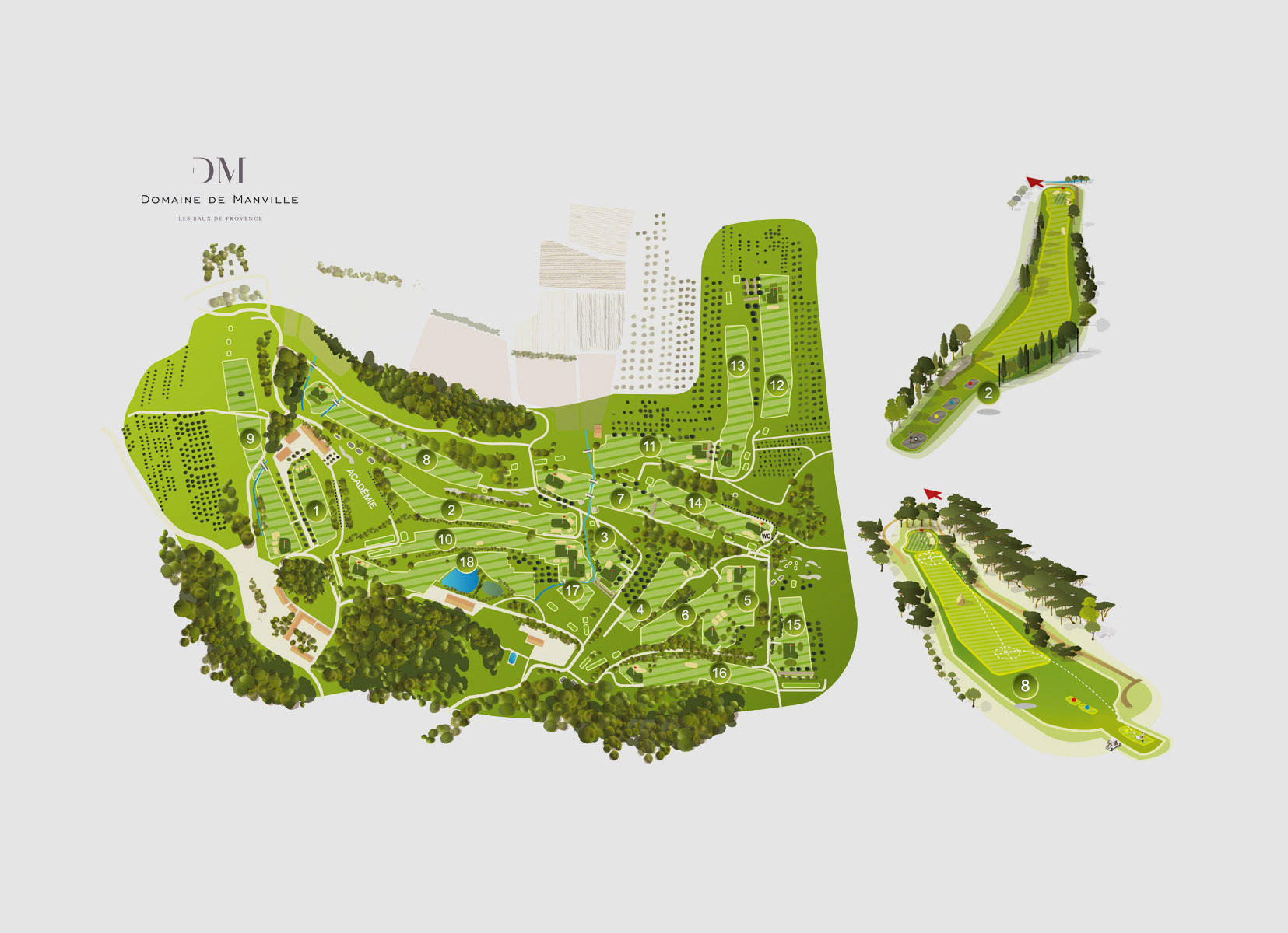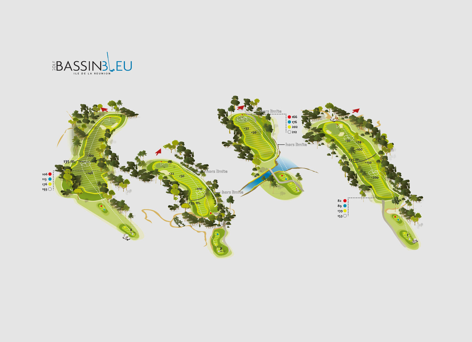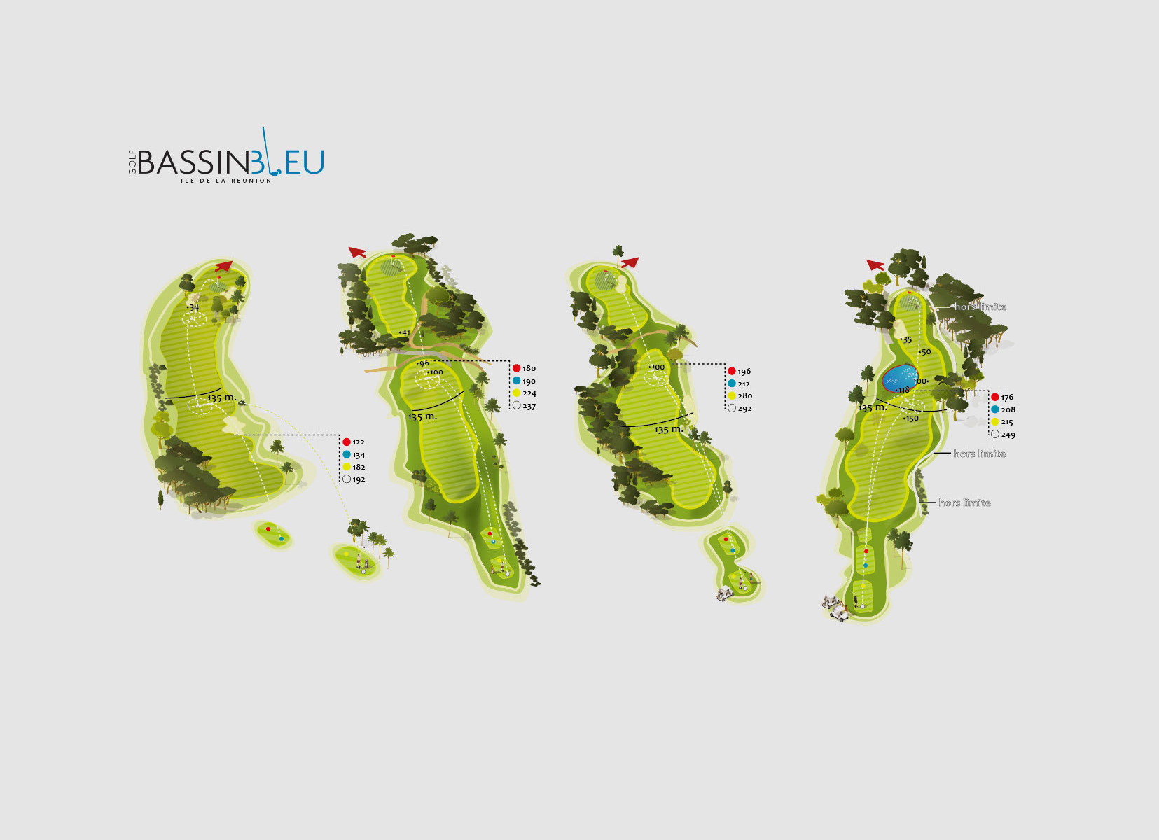 Illustrations de parcours golfiques - vue 2D ou isométries de golfs